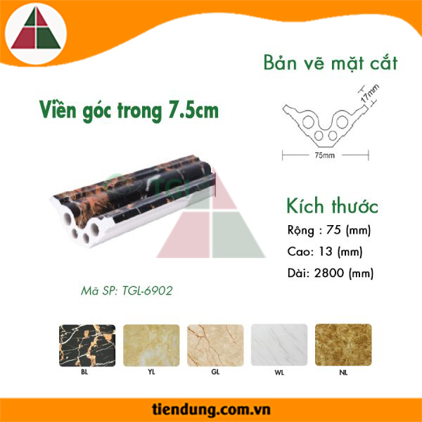 Đường Góc Trong 7.5 Cm Giả Đá Cẩm Thạch TGL-6902 là phụ kiện đi kèm tấm nhựa giả đá chuyên sử dụng trong Nội Thất như: ốp tường, ốp trần, quảng cáo…sản phẩm có rất nhiều tính năng ưu việt, giá thành lại rất rẻ, vật liệu nhẹ thi công nhanh, tuổi thọ cao. Đây sẽ là vật liệu phát triển rất mạnh trong nhiều thập kỷ tới, với sự đón nhận hài lòng của người tiêu dùng rất cao.