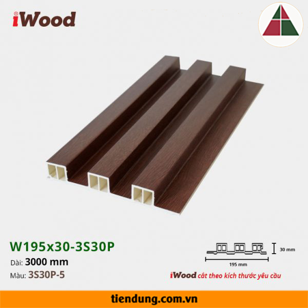 iWood W195x30-3S30P-5 có tông màu đỏ gạch, mang lại cảm giác trầm ấm cho không gian nhà bạn. Bề mặt được thiết kế bởi họa tiết vân gỗ xoắn tròn đặc sắc, kết cấu 3 sóng cao tạo điểm nhấn nổi bật khi lắp đặt.