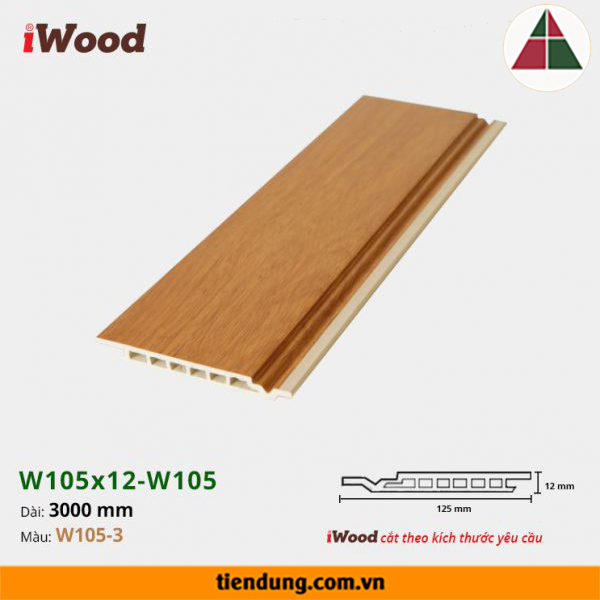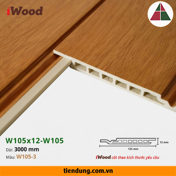 iWood W105x12-W105-3 có màu vàng nhạt kết hợp đường nét vân gỗ lượn sóng tạo nét đặc biệt cho sản phẩm. Nguyên liệu chính từ nhựa, nhờ đó sản phẩm có khả năng chịu nước vượt trội, không mối mọt, cong vênh, chịu được tác dụng lực lớn. Tấm nhựa iWood được sử dụng rộng rãi cả trong và ngoài trời trong các hạng mục ốp tường, trần.