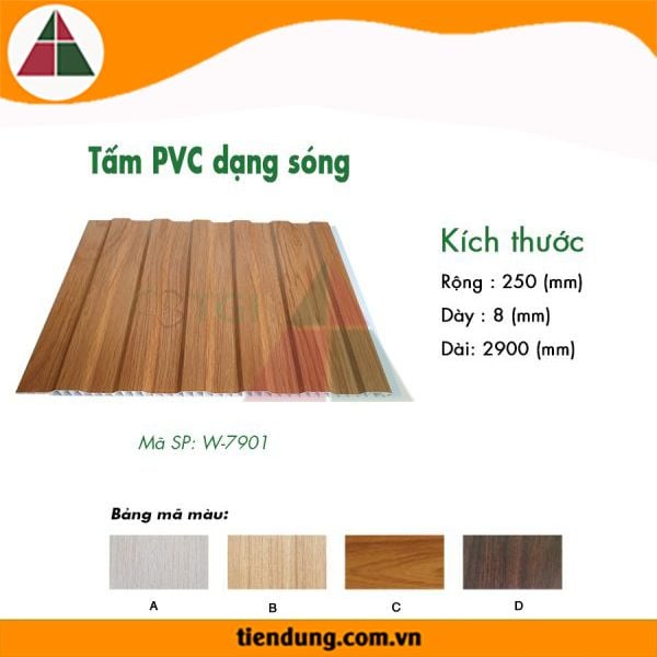 Tấm Ốp PVC Dạng Sóng W-7901 được sản xuất từ nhựa PVC trên dây chuyền công nghệ ép đùn có cấu trúc dạng tổ Ong, được sản xuất bằng kỹ thuật riêng để đảm bảo yêu cầu cao trong thi công như: ốp trần, ốp tường...Bề mặt được phủ thêm một lớp Film nhựa PVC khó bong tróc với nhiều màu sắc phong phú nhằm đáp ứng sự đa dang trong các thiết kế khác nhau như: biệt thự, nhà phố, nhà hàng, khách sạn...
