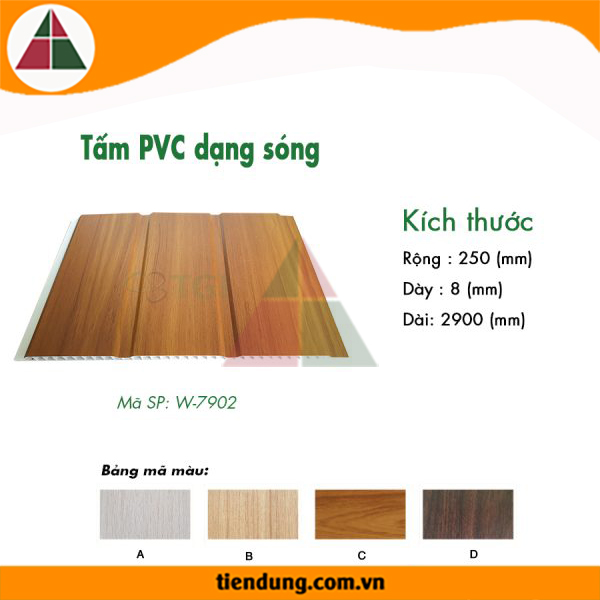 Tấm Ốp PVC Dạng Sóng W-7902 được sản xuất từ nhựa PVC trên dây chuyền công nghệ ép đùn có cấu trúc dạng tổ Ong, được sản xuất bằng kỹ thuật riêng để đảm bảo yêu cầu cao trong thi công như: ốp trần, ốp tường...Bề mặt được phủ thêm một lớp Film nhựa PVC khó bong tróc với nhiều màu sắc phong phú nhằm đáp ứng sự đa dang trong các thiết kế khác nhau như: biệt thự, nhà phố, nhà hàng, khách sạn...